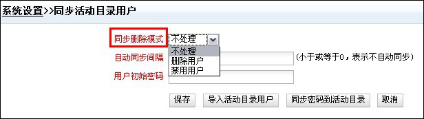 設(shè)置同步刪除模式 即:在AD上刪除的用戶,在郵件系統(tǒng)上的處理模式,共分為三種模式。