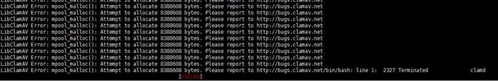 LibClamAV Error: mpool_malloc(): Attempt to allocate 8388608 bytes. Please