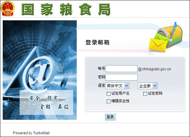 2010年中,國家糧食局針對TurboMail郵件系統(tǒng)的九層反垃圾引擎、郵件加密、系統(tǒng)監(jiān)控等方面做了嚴(yán)格的測試,并一直獲得國家糧食局技術(shù)工程師的一致認(rèn)同。日前,TurboMail郵件系統(tǒng)已經(jīng)投入了正式運(yùn)行使用。