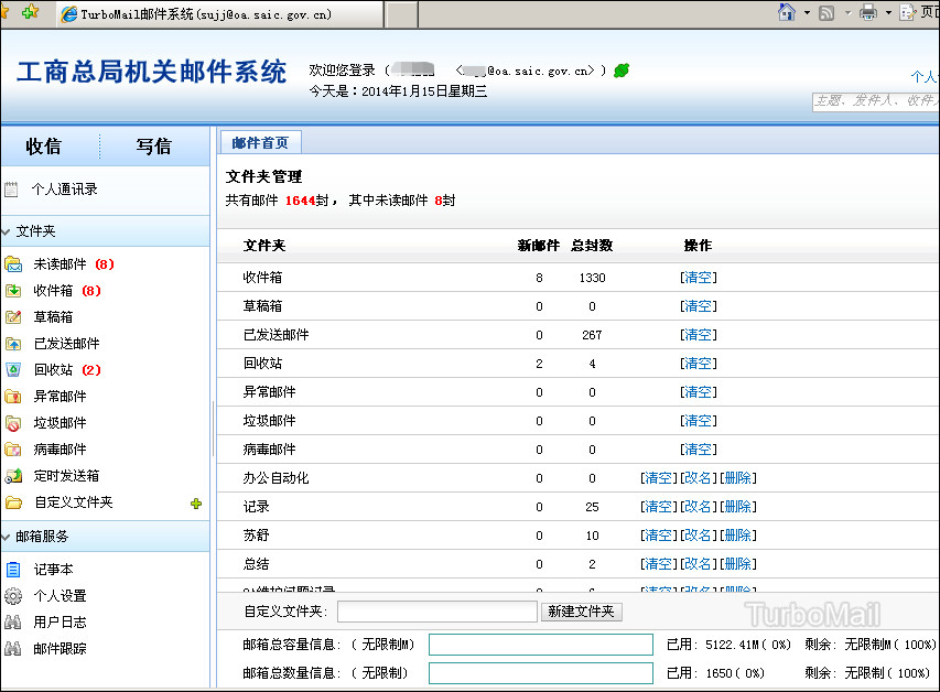 通過TurboMail提供的標準二次開發(fā)接口API,國家工商總局的OA系統(tǒng)與郵件系統(tǒng)完成了無縫集成,實現(xiàn)了用戶管理同步、組織機構(gòu)管理同步、單點登錄等功能,便利了管理人員進行統(tǒng)一用戶管理;嵌入郵件收發(fā)列表到OA系統(tǒng)中,用戶一次性登錄驗證即可使用各種內(nèi)部信息管理系統(tǒng),可以在OA系統(tǒng)與郵件系統(tǒng)間任意跳轉(zhuǎn)。