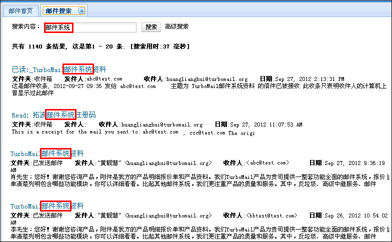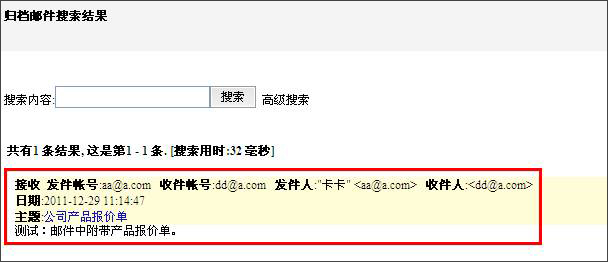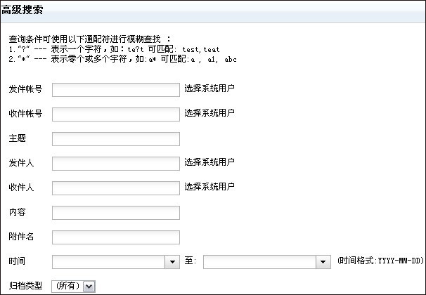 智能搜索:通過各種條件的關(guān)鍵字進(jìn)行快速查找,從而更精確查找目標(biāo)郵件。如下圖頁(yè)面: