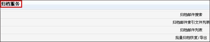 一旦管理員開啟了用戶的歸檔查看功能,用戶在登陸自己的郵箱后,左側(cè)郵件服務(wù)欄會(huì)出現(xiàn)“郵件歸檔”這個(gè)功能選項(xiàng),可查看過去的歷史郵件,并對(duì)有需要的郵件執(zhí)行恢復(fù)操作。