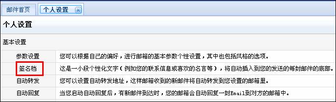 登錄個(gè)人郵箱WebMail→個(gè)人設(shè)置→簽名檔: