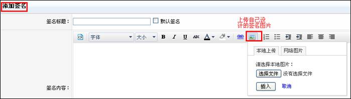 在編輯個(gè)性化簽名時(shí)可以選擇插入圖片:
