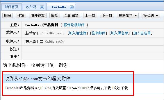 直接在寫信窗口點(diǎn)擊“超大附件”,大附件上傳到郵件服務(wù)器,附件以鏈接的形式發(fā)給收件人,收件人點(diǎn)擊下載獲取附件,極大的加快大附件的發(fā)送速度,并且避免退信。