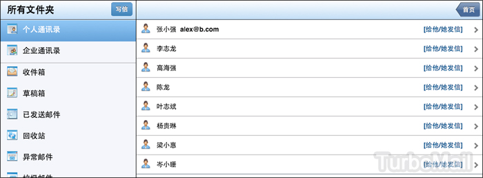 使用方法:使用iPad瀏覽器輸入TurboMail Web地址:mail.domain.com( domain.com是客戶的郵箱域名),即可登陸個(gè)人郵箱。