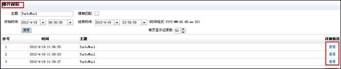4. 填入郵件主題、時(shí)間,點(diǎn)擊“搜索”如下圖: