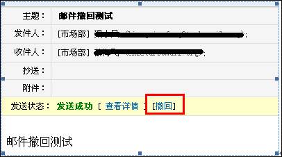 2. 打開已發(fā)送給系統(tǒng)內(nèi)的用戶郵件,點(diǎn)擊撤回。