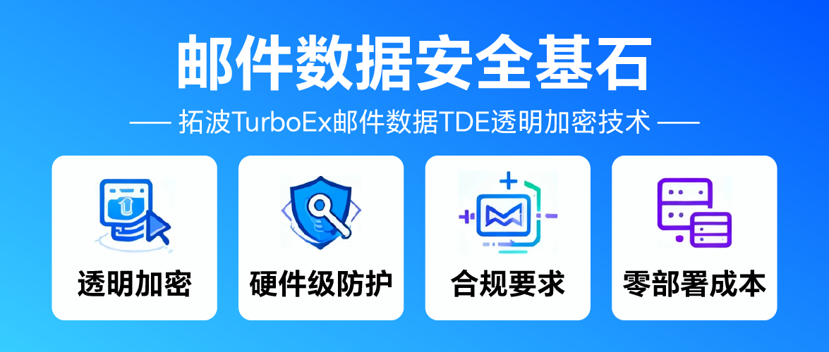 日前,國內領先的企業(yè)級郵件系統(tǒng)解決方案提供商——廣州拓波軟件科技有限公司正式宣布,在其旗艦產品TurboEx郵件系統(tǒng)中,成功研發(fā)并集成了數(shù)據(jù)庫透明加密技術。在數(shù)字化時代,數(shù)據(jù)已成為企業(yè)的核心資產。然而,硬盤失竊、服務器整機丟失、備份磁帶在運輸途中遺失等物理安全事件,以及由此導致的“拖庫”風險,始終是高懸于企業(yè)信息安全之上的“達摩克利斯之劍”。為應對這一挑戰(zhàn),拓波郵件TurboEx推出的TDE加密功能,旨在從數(shù)據(jù)存儲的源頭構筑一道堅實的防線,確保即使存儲介質落入他人之手,其中的敏感業(yè)務郵件、客戶信息及附件也無法被解讀。