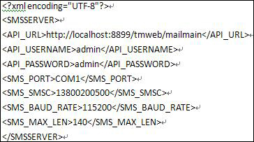 在短信服務(wù)器安裝目錄,用文本方式打開smsserver\conf\smsserver.xml。