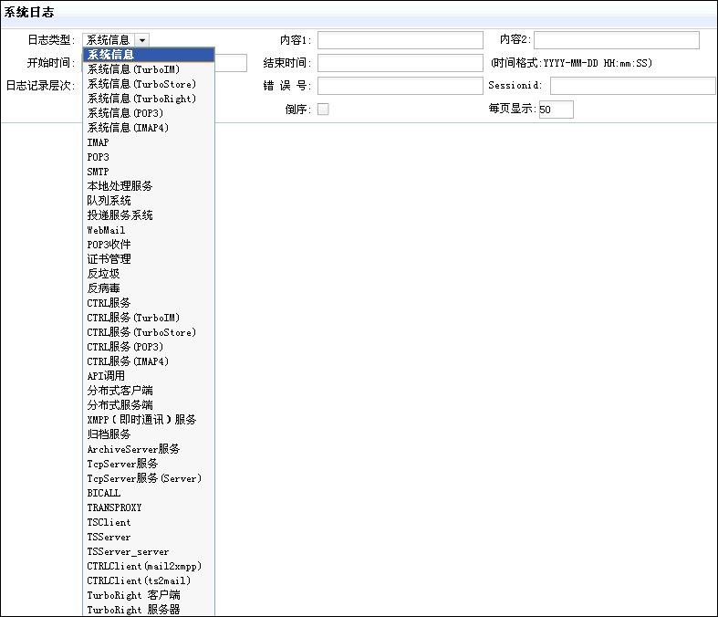 良好的日志查看功能是郵件系統(tǒng)維護(hù)的必備條件,它可以在事后還原系統(tǒng)的使用過程,尤其是產(chǎn)生故障時(shí)可以迅速地定位故障發(fā)生的過程。與別的郵件服務(wù)器產(chǎn)品的簡單的系統(tǒng)日志功能(非對系統(tǒng)運(yùn)行記錄全面日志)相比,TurboMail的日志查看功能非常強(qiáng)大,它分層級記錄日志,在每個(gè)層級里又按照不同的屬性進(jìn)行分類記錄。