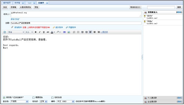 ★“編碼”:選擇郵件的編碼,注意在發(fā)送非中文郵件時選擇Unicode編碼。