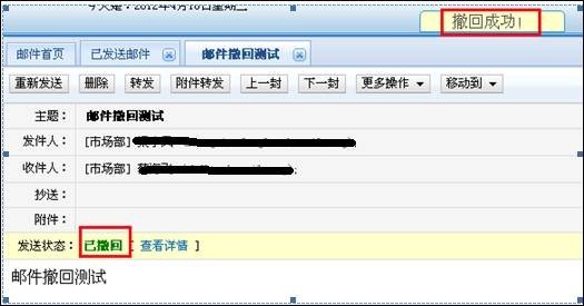 1)打開已發(fā)送給系統(tǒng)內(nèi)的用戶郵件,點擊撤回。