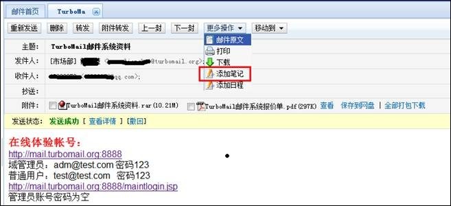 用戶也可以在郵件列表中,將重要的郵件轉(zhuǎn)成記事本記錄,方便對(duì)重要郵件的收藏和管理。