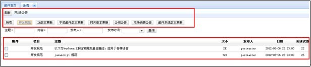 一旦公司有最新公告發(fā)布,用戶郵箱會(huì)即時(shí)收到公司公告信息。用戶在頁(yè)面左上側(cè),點(diǎn)擊“公告”文件夾,可以瀏覽公司所有的公告信息,并可分門別類的查看不同組的公告信息。