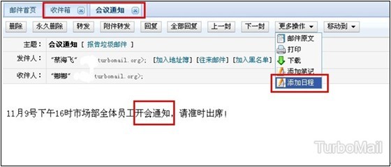 7)郵件與日程安排可實(shí)現(xiàn)同步,重要郵件可立即添加日程。