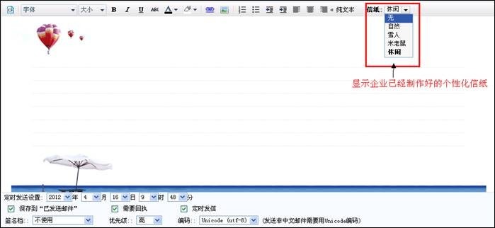TurboMail郵箱為企業(yè)用戶提供了自定制企業(yè)風(fēng)格信紙功能,讓收件人一打開(kāi)郵件,就能直觀的看到企業(yè)的專業(yè)化形象。